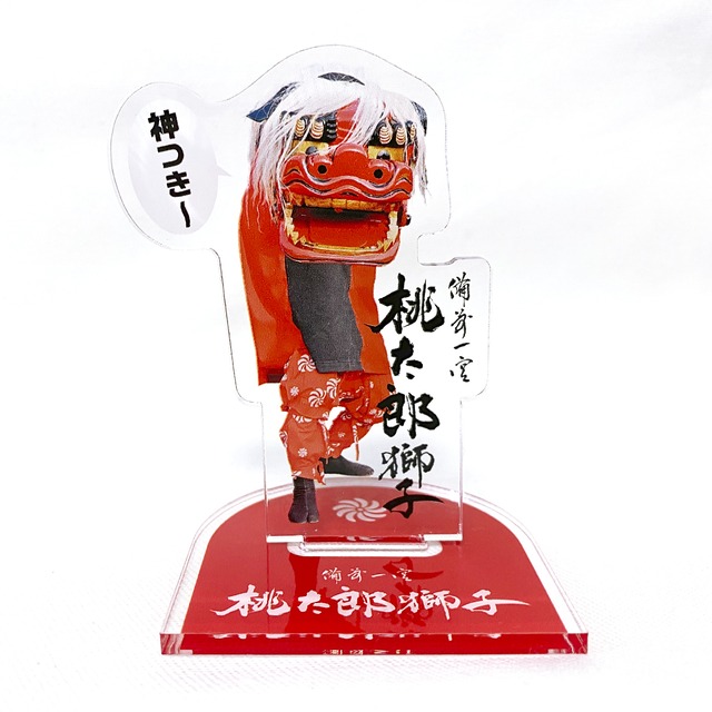 \獅子舞団体 活動応援グッズ/ 『備前一宮 桃太郎獅子』オリジナルアクリルスタンド 【販売目的】 獅子舞の認知度アップと応援グッズとして販売すること売上を貯めていき 獅子舞のボランティアでの出演・修繕・維持管理・その他グッズの制作に充てたいと考えています どうぞよろしくお願いします! 素材:透明アクリル3mm厚 サイズ:高さ約75mm 印刷:片面/CMYK4色+白押さえ ※台座は片面のみ 包装:OPP袋個包装 備前一宮 桃太郎獅子とは 岡山を拠点に地域活性化と伝統の創造を目的に2006年から獅子舞活動中 言い伝えでは 獅子の舞は穢れを祓い ハレの日に獅子に頭を噛まれると 噛み付く(=神様が付く)との語呂合わせから厄除開運になると言われているらしい... 公式サイト https://momotaro-shishi.com/ ※注文一回あたりの購入可能個数 1点までの購入制限を設定しています 予めご了承ください